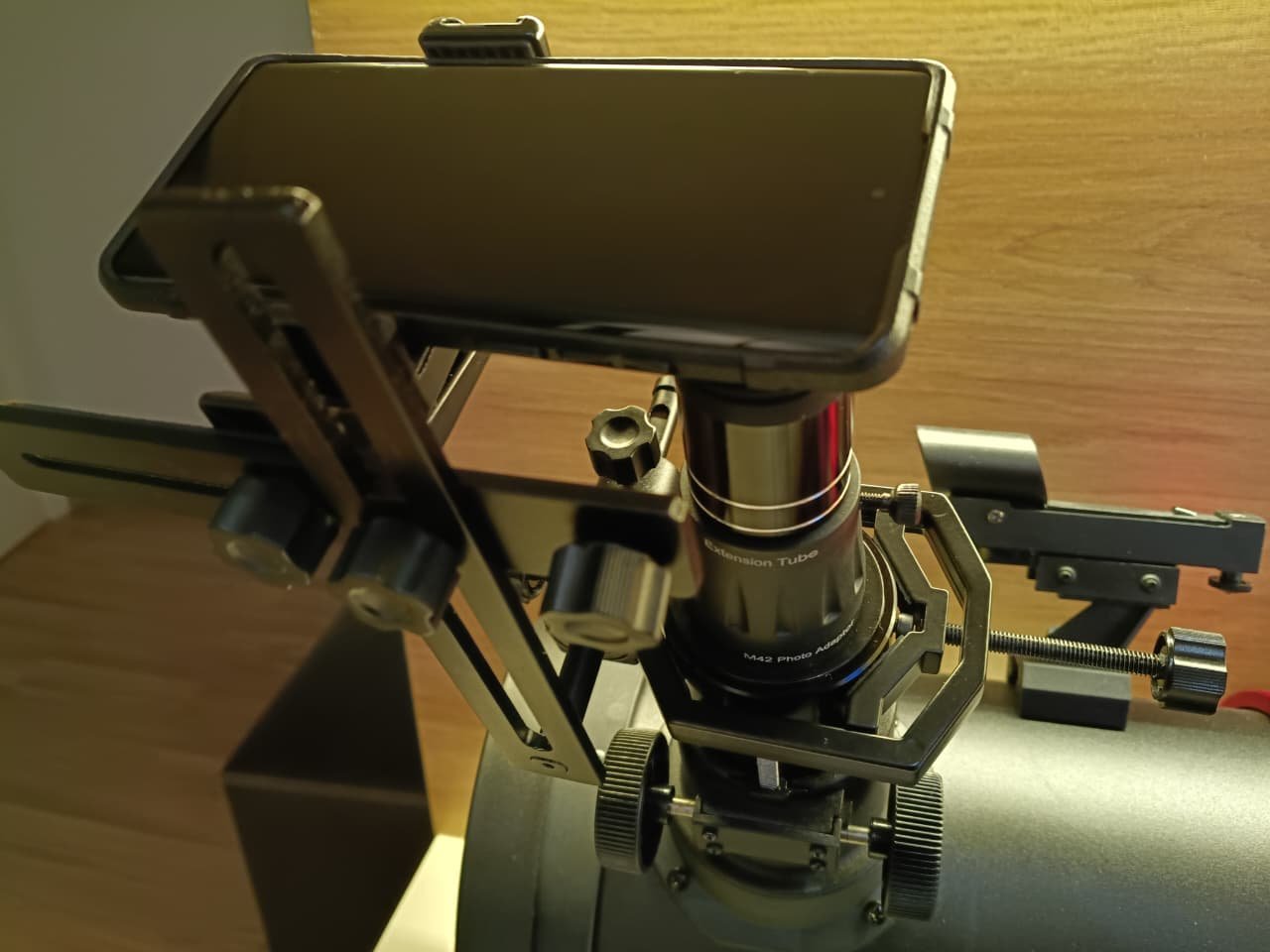 Para esta imagem, utilizei um Motorola Edge 40 acoplado ao telescópio pelo método afocal, que consiste em alinhar precisamente a lente do smartphone com a pupila de saída da ocular.