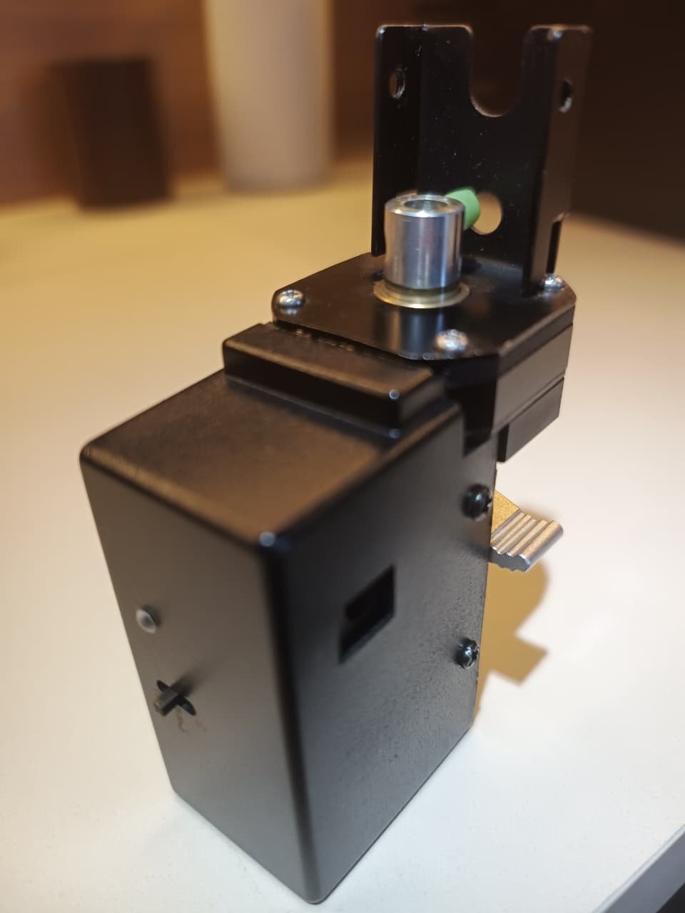 Fixação do Suporte: O motor é apenas encaixado na montagem, não há parafusos para fixação, então após o encaixe utilizei a pequena chave allen que acompanha o motor para fixar o eixo do motor ao eixo de ascenção reta da montagem.