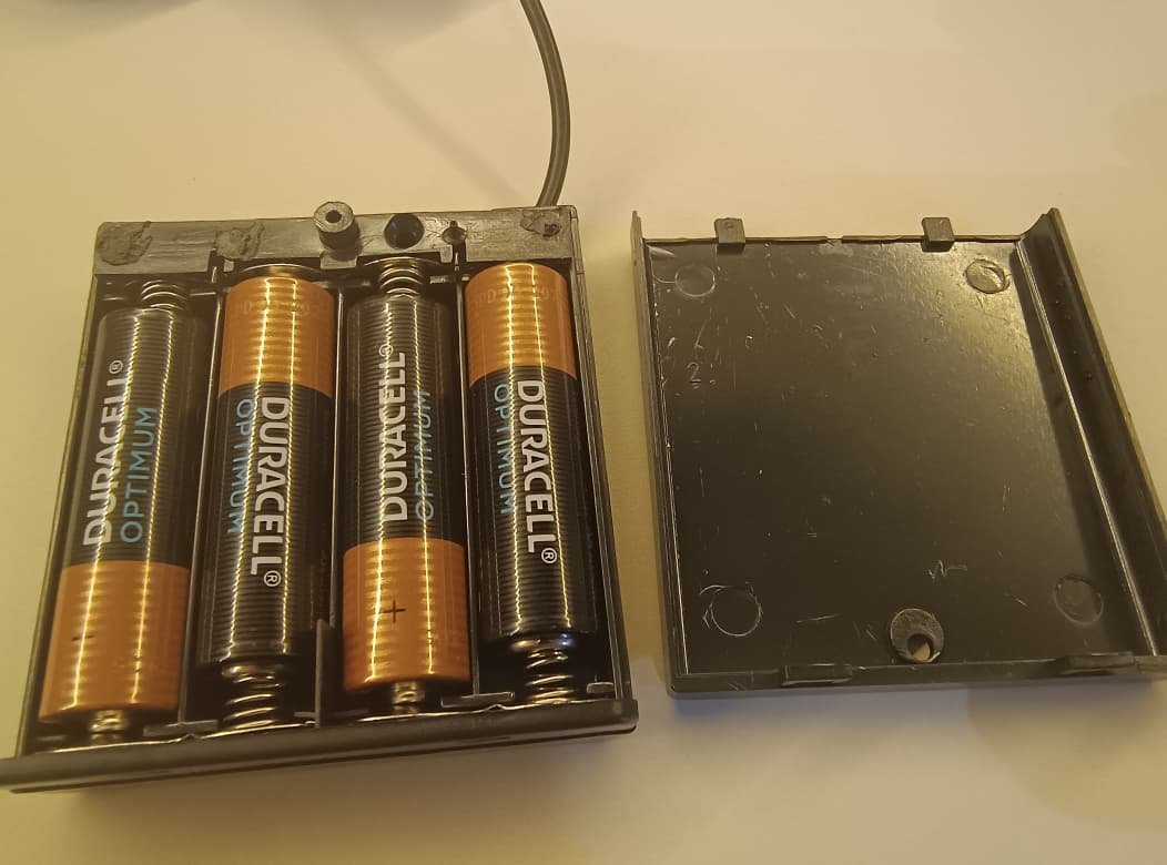 A alimentação do motor é fornecida por 4 pilhas tamanho AA.