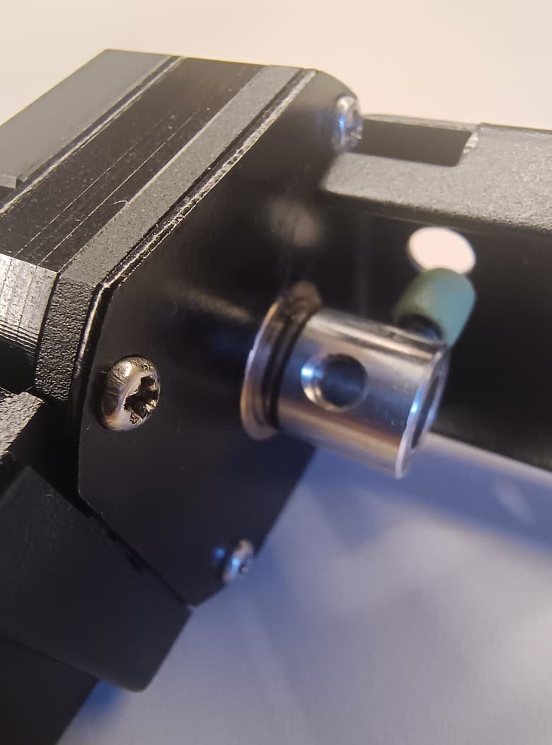 Dica crucial: Certifique-se de que o parafuso do eixo do motor aperte contra a parte chata (fresada) do eixo da montagem para evitar que ele deslize durante a rotação.